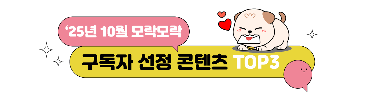 안녕하세요, 모랑이 여러분!🎃 10월의 마지막 날이네요. 쏜살같이 지나간 시간 속에서, 모랑이 여러분의 10월은 어떤 이야기로 채워졌나요? 짧았지만 깊었던 가을, 그 속의 순간들은 오래도록 마음에 남을 것 같습니다. 이번 주 모락모락은 가을을 차분히 마무리하고 새로운 한 달을 기분 좋게 맞이할 수 있는 이야기를 가득 채웠습니다. 10월 이벤트 당첨자 발표도 준비되어 있으니 끝까지 집중해 주세요!🍀