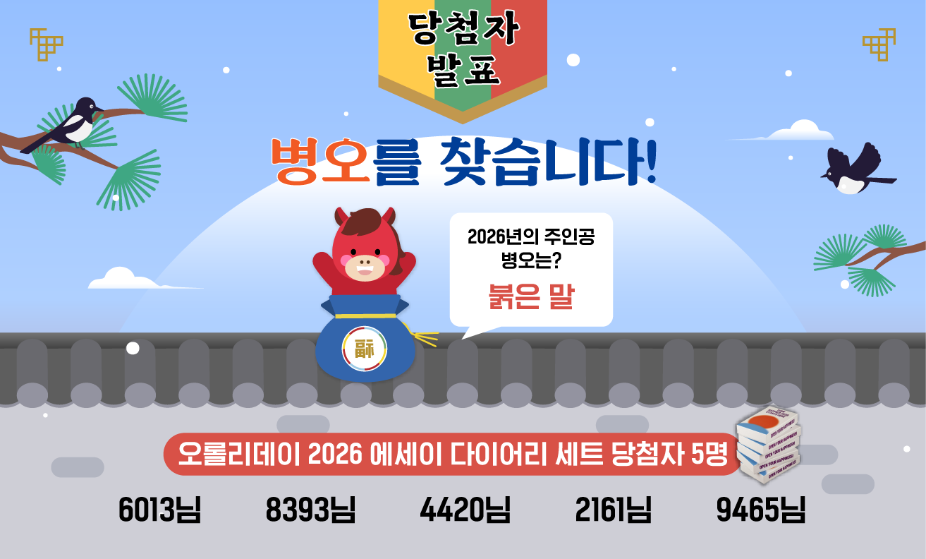 질주와 도약, 확산과 변화를 상징하는 2026년의 주인공 '병오'는 2번 붉은 말이었습니다!🐴 정말 많은 분들이 정답을 맞혀주신 가운데, 행운의 주인공 다섯 분을 발표합니다! 당첨되신 분들에게는 병오년 새해의 계획과 다짐, 그리고 일상 속 나만의 이야기를 기록할 수 있는 다이어리 세트를 선물로 보내드릴게요. 참여해 주신 모든 분께 진심으로 감사드리며, 붉은 말의 기운이 모랑이 여러분의 한 해를 힘차게 이끌어주길 바랍니다. 2월에도 계속될 모락모락 이벤트, 많은 기대 부탁드려요!☺️
