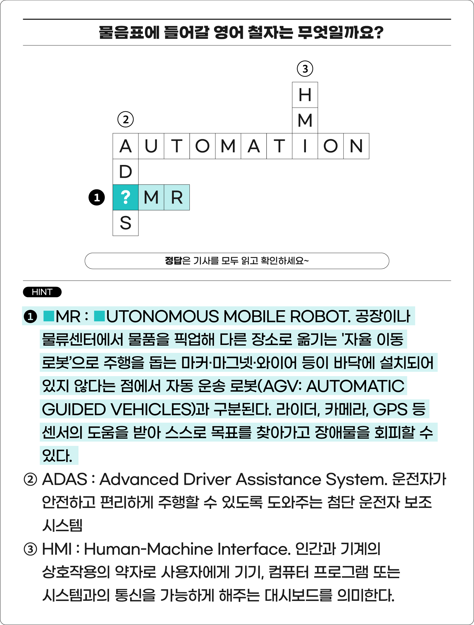 ๊ณต์ฅ์ด๋ ๋ฌผ๋ฅ์ผํฐ์์ ๋ฌผํ์ ํฝ์ ํด ๋ค๋ฅธ ์ฅ์๋ก ์ฎ๊ธฐ๋ '์์จ ์ด๋ ๋ก๋ด'์ผ๋ก ์ฃผํ์ ๋๋ ๋ง์ปคใ๋ง๊ทธ๋ทใ์์ด์ด ๋ฑ์ด ๋ฐ๋ฅ์ ์ค์น๋์ด ์์ง ์๋ค๋ ์ ์์ ์๋ ์ด์ก ๋ก๋ด๊ณผ ๊ตฌ๋ถ๋ฉ๋๋ค. ๋ผ์ด๋, ์นด๋ฉ๋ผ, GPS ๋ฑ ์ผ์์ ๋์์ ๋ฐ์ ์ค์ค๋ก ๋ชฉํ๋ฅผ ์ฐพ์๊ฐ๊ณ ์ฅ์ ๋ฌผ์ ํํผํ ์ ์๋๋ฐ์. ์ด๋ฐ ํน์ง์ ๋ฐํ์ผ๋ก ํ๋ฌผ์ ์ด์กํ๋ ๊ฒ๋ฟ๋ง ์๋๋ผ ๋ค์ํ ์ฐ์ ํ์ฅ์์๋ ํ์ฉ๋ ์ ์ฌ๋ ฅ์ด ์๋ ๊ธฐ์ ๋ก ํ๊ฐ๋ฐ๊ณ ์์ต๋๋ค.